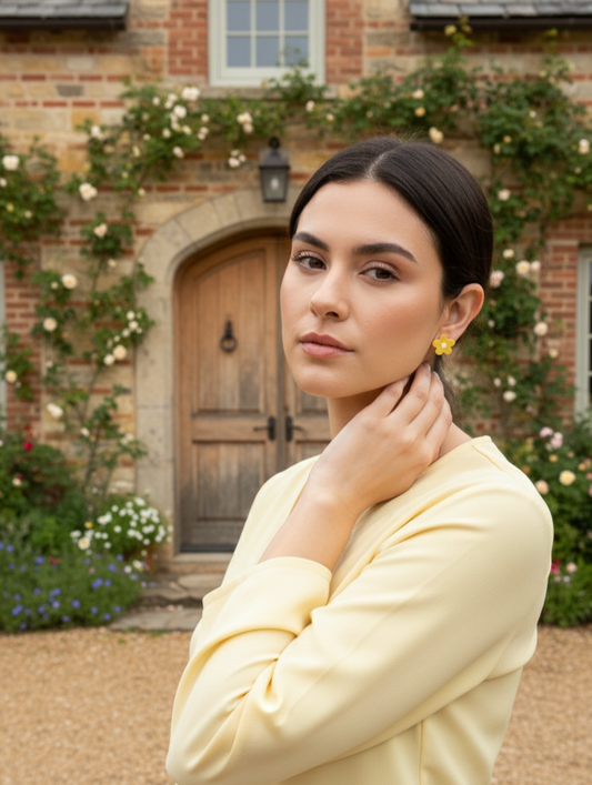 Yellow Earrings – yellow flower in hand-painted resin