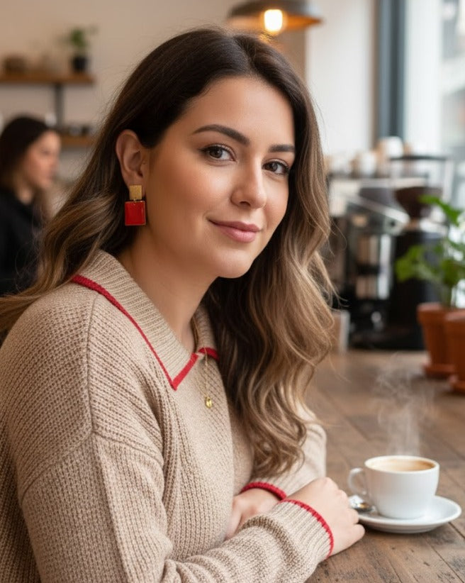 Small square earrings! They're easy to match and perfect for every day! They feature vibrant colors. Handcrafted in our workshop in central Madrid, using brass and enameled resin. Earrings that will last a lifetime.