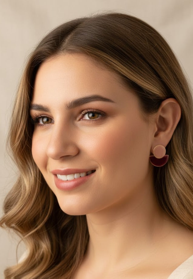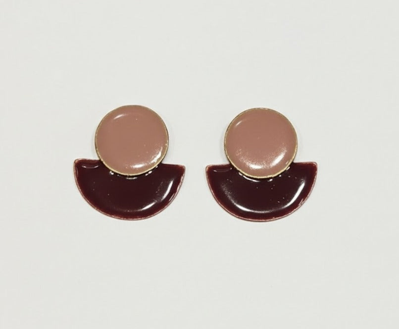 The Spring Green Semi-Precious Earrings are an explosion of freshness and color. Their design combines a hand-painted resin circle in vibrant fuchsia, 1.5 cm in diameter, with a pastel green semicircle that brings balance and serenity.