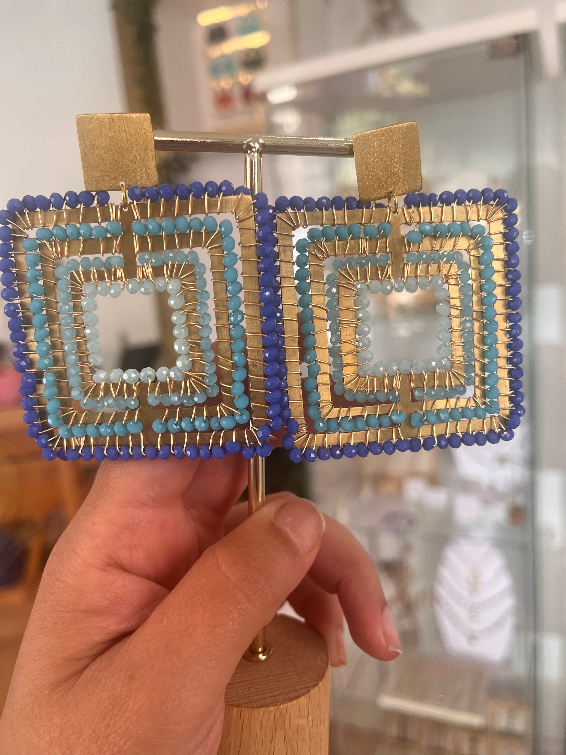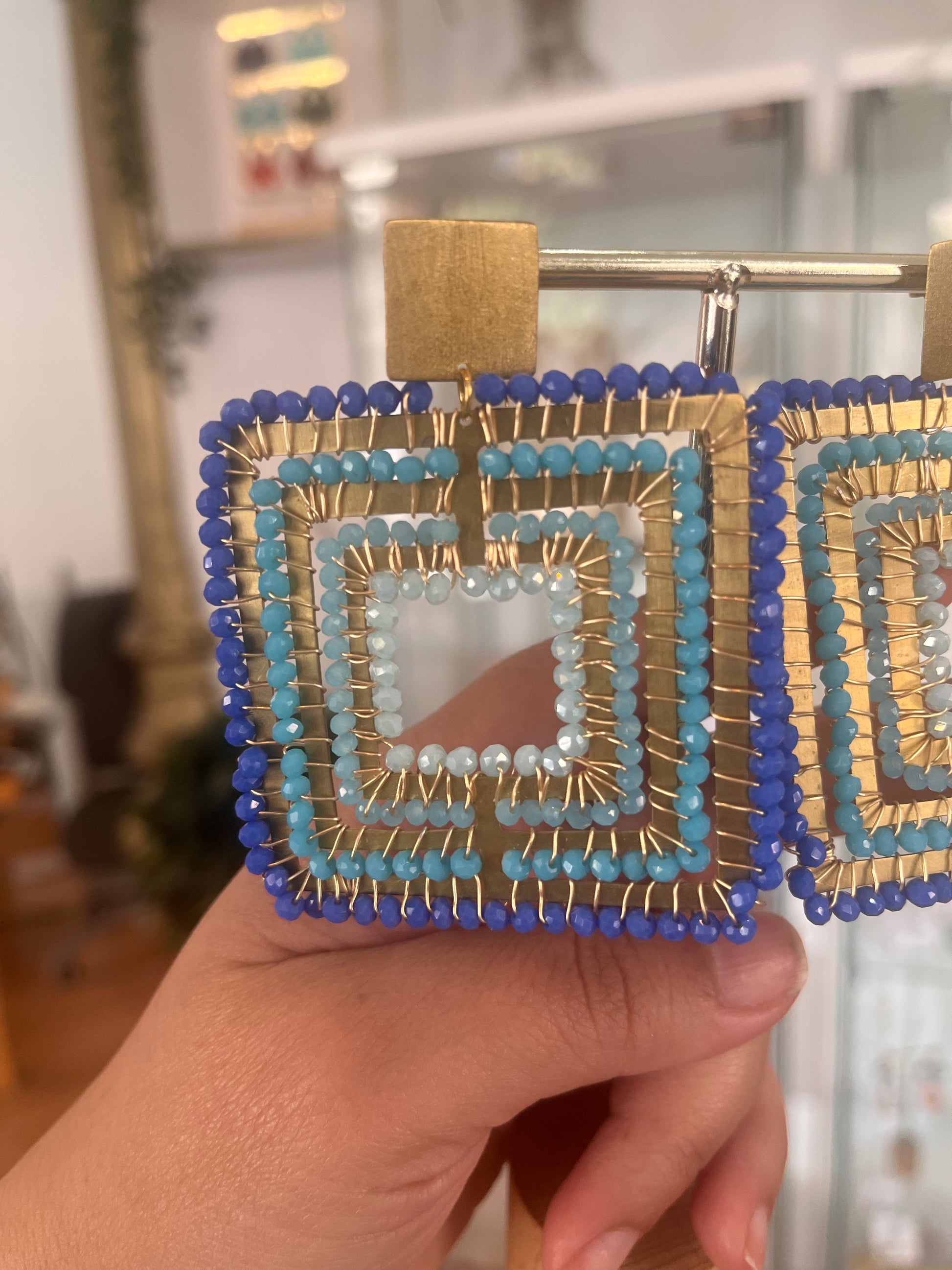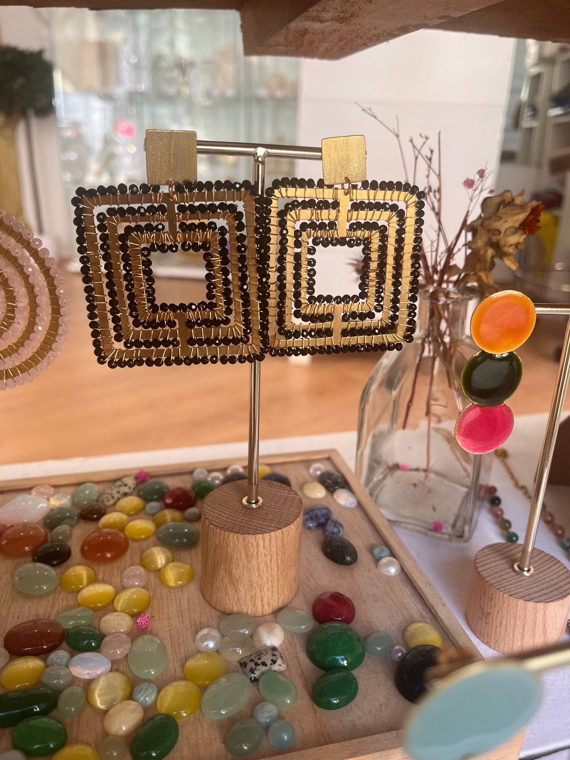 Boucles d'oreilles en laiton tissées à la main avec des cristaux. Entièrement fabriquées dans notre atelier du centre de Madrid.