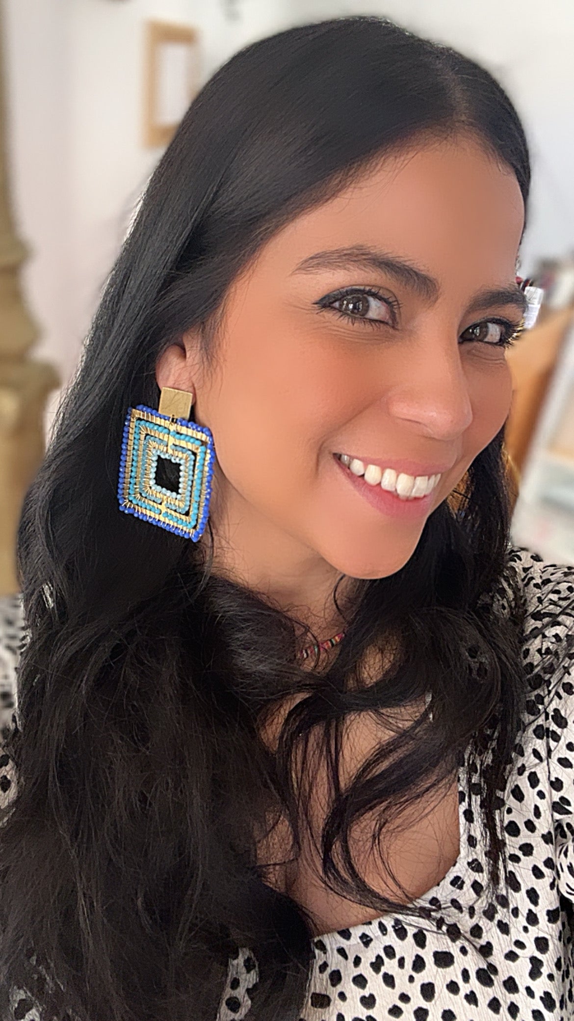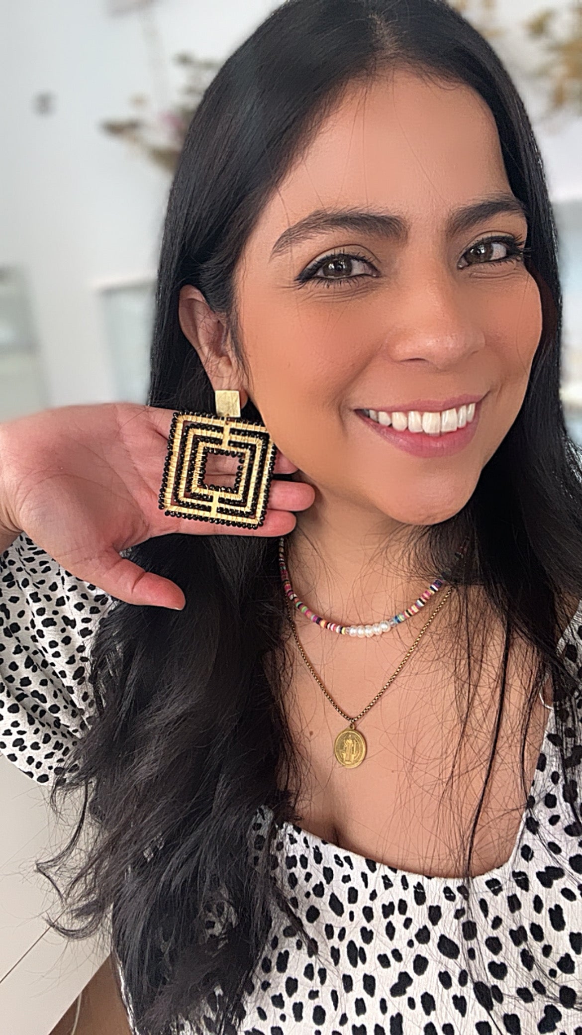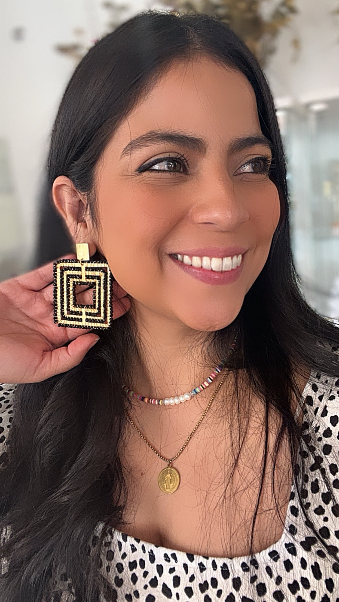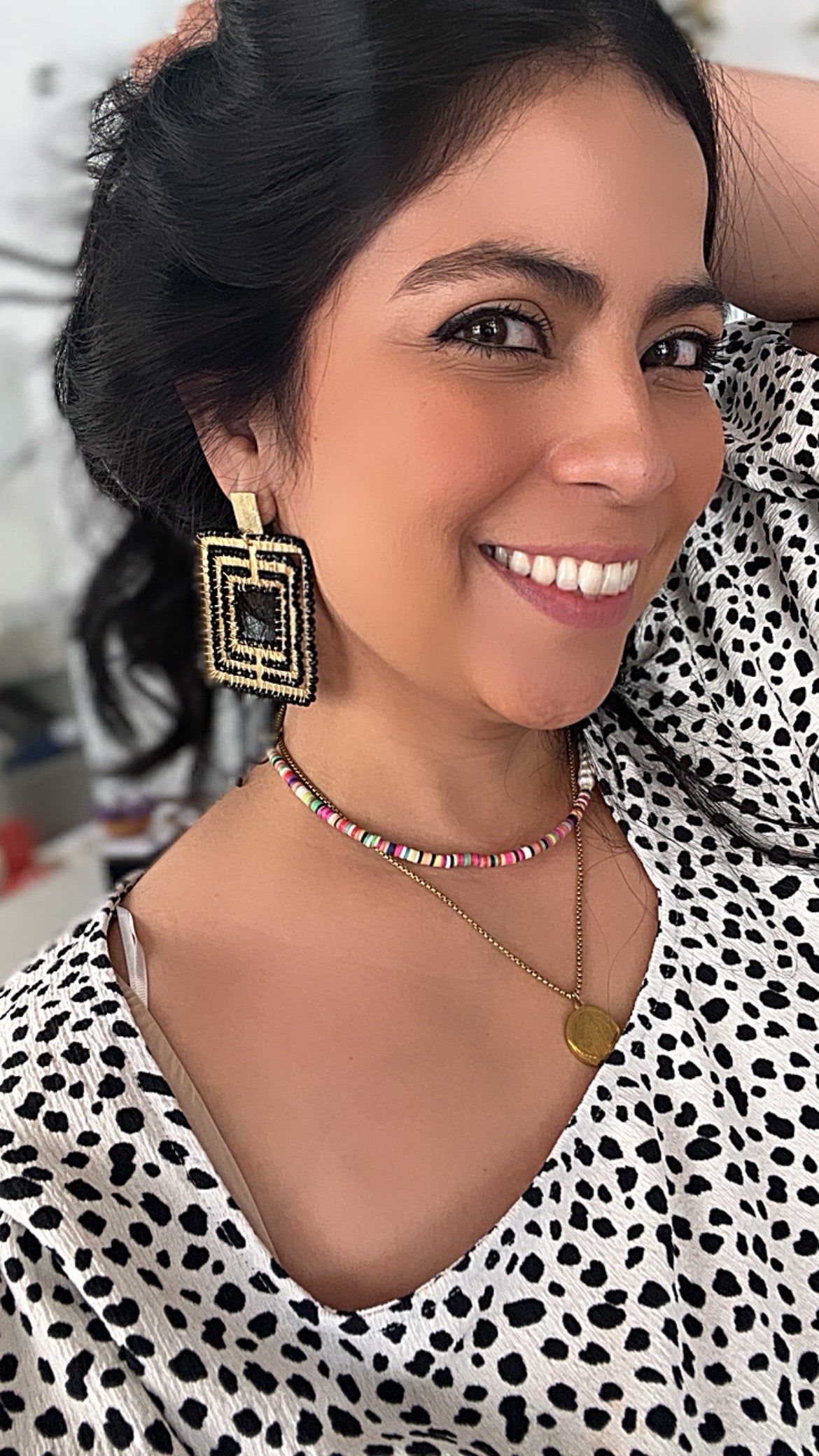 Boucles d'oreilles en laiton tissées à la main avec des cristaux. Entièrement fabriquées dans notre atelier du centre de Madrid.