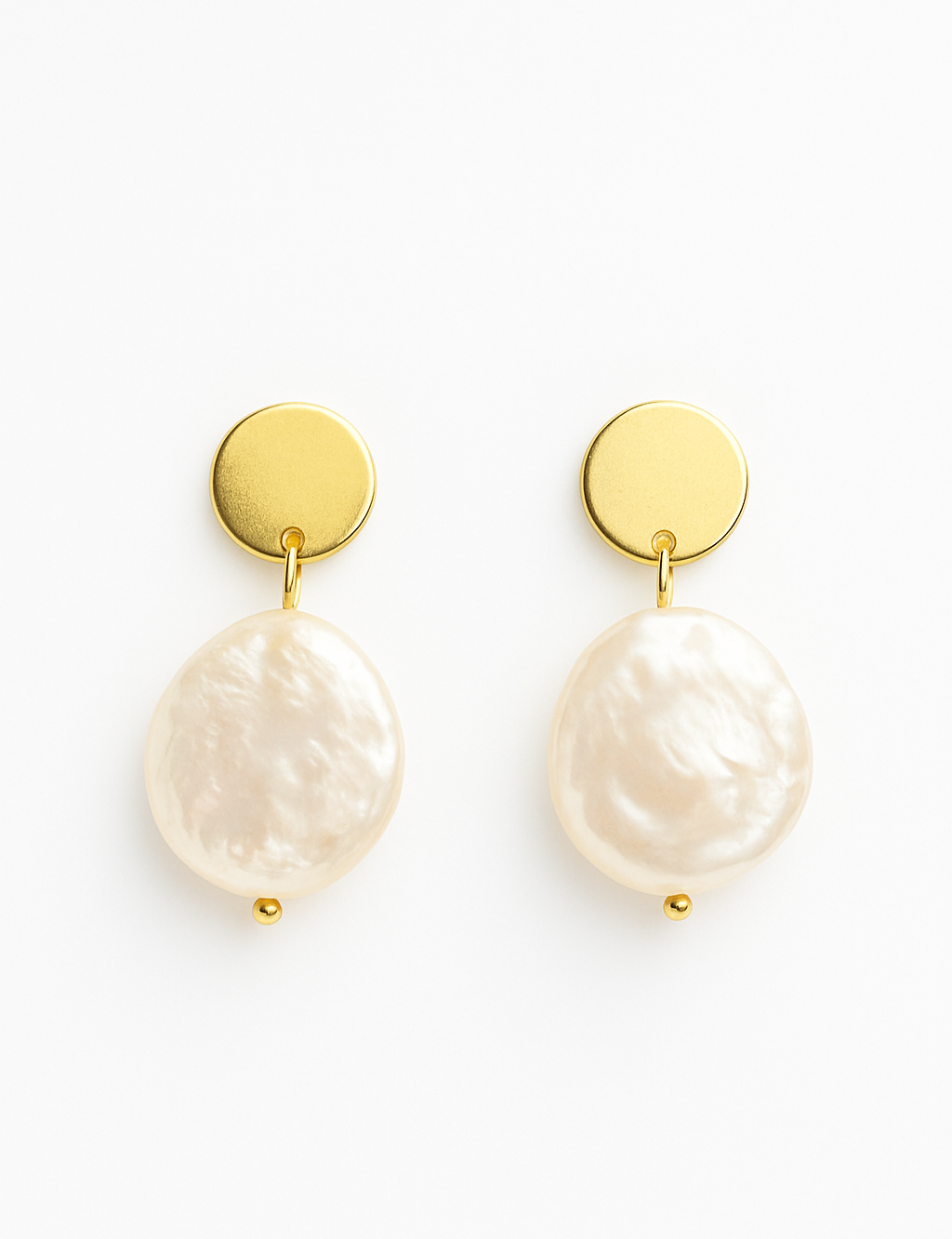 Pendientes elegantes y sutiles que combinan una base redonda dorada de acero con baño de oro y una pieza de nácar natural, símbolo de pureza y luz interior. Su diseño sobrio y delicado los convierte en el complemento perfecto para ocasiones especiales llenas de significado: bautizos, primeras comuniones, bodas o celebraciones donde el alma también se adorna.