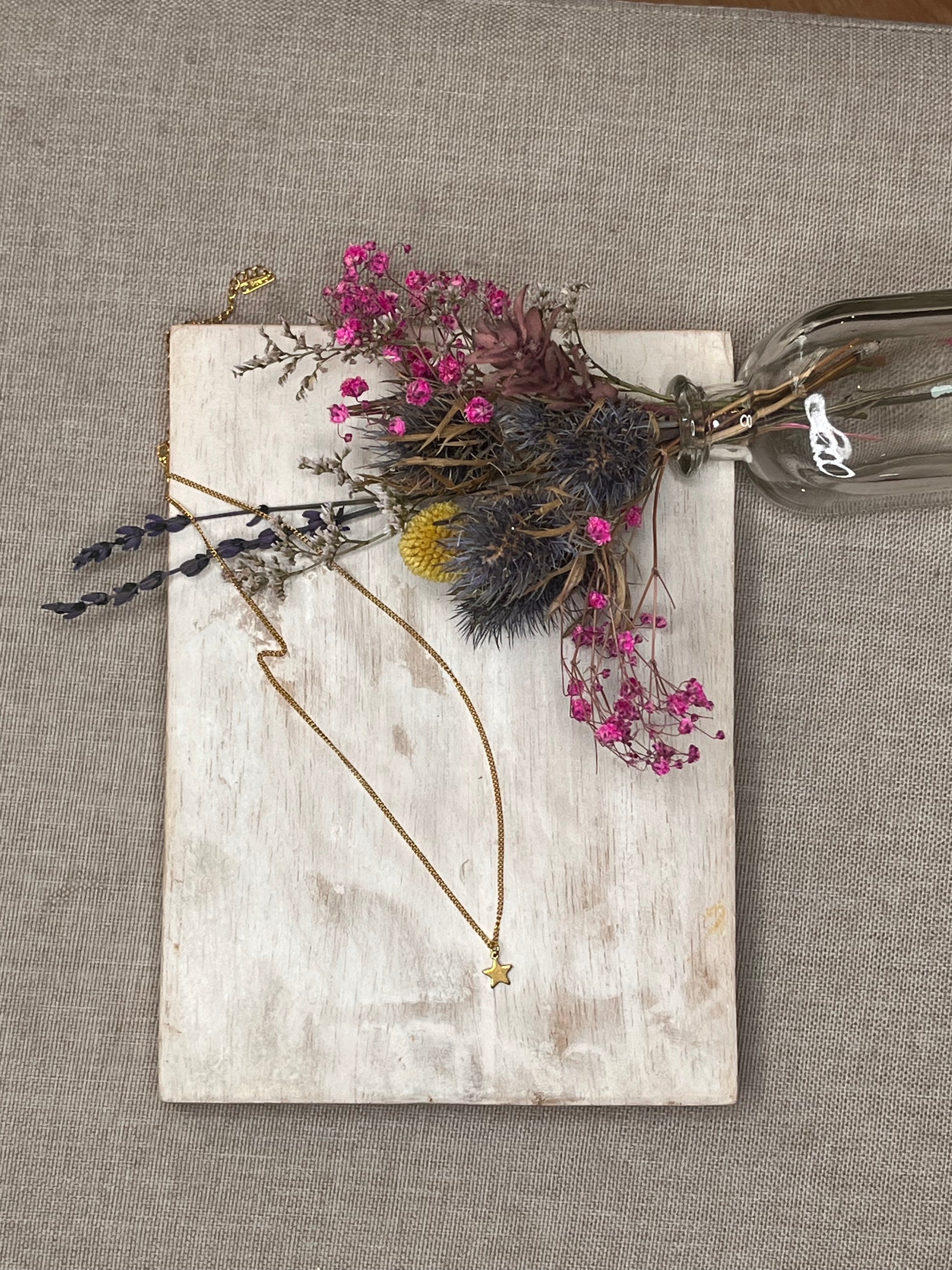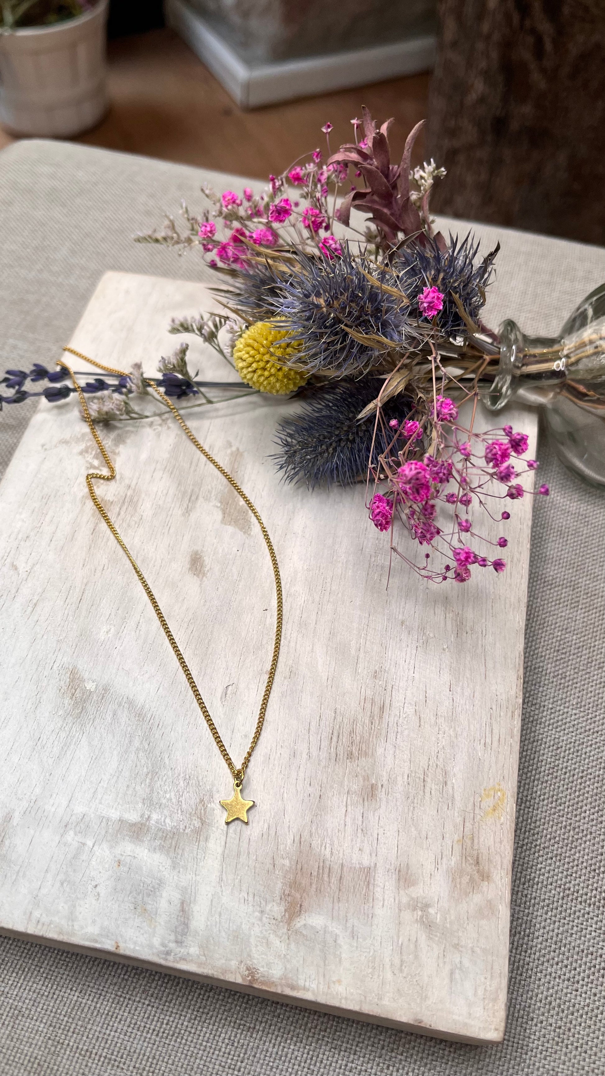 Cadena de 45 cm aproximadamente con colgante de estrella mini! Ideal para usar todos los días🫶🏻 todo en acero inoxidable y baño de oro ❤️