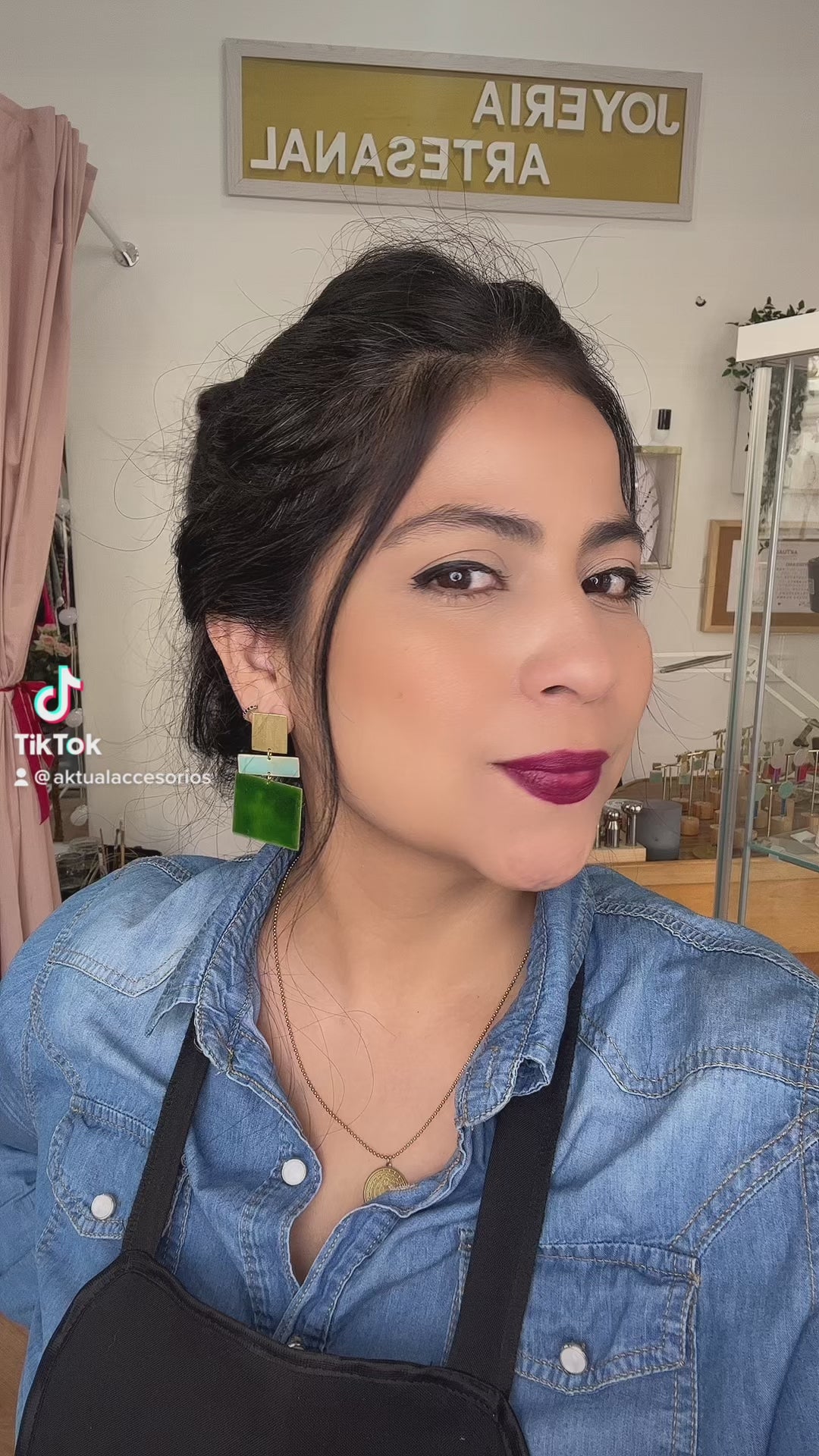 Pendientes hechos en latón y resina esmaltada en tonos verdes. No pesan nada y agregan mucha vida a tu look! Son artesanales y elaborados en el taller del centro de Madrid 🤍 de antemano gracias por apoyar el trabajo artesanal 💕