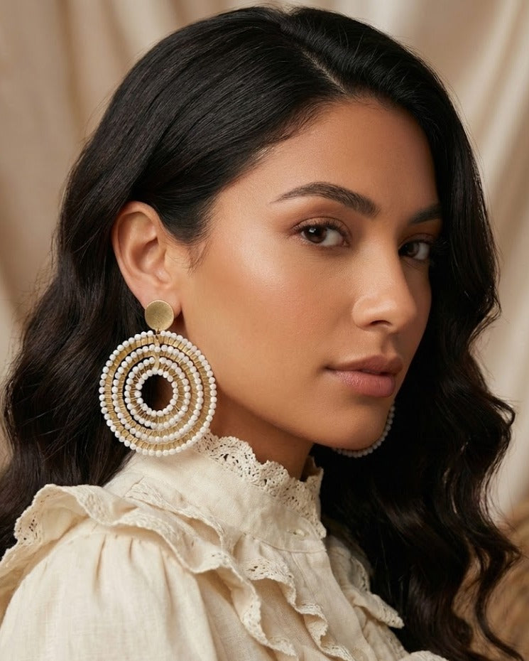 Pendientes realizados a mano en Latón, en la tienda taller ubicada en el centro de Madrid. Estos pendientes son una expresión cultural del amor por la artesanía y las raíces latinas que nos caracterizan.