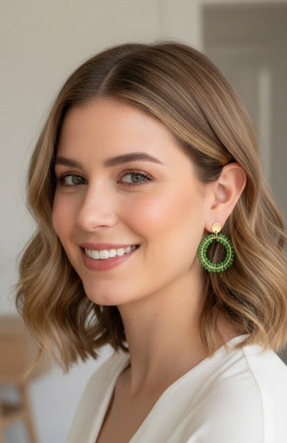 Pendientes tejidos verdes medio medianos