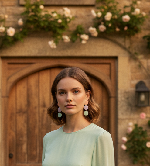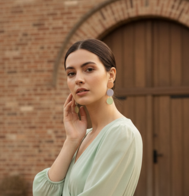 Cada tono en estos pendientes es como un pétalo fresco que florece en un jardín recién despierto. El lila suave evoca la fragancia de las primeras flores en flor, mientras que el verde claro recuerda el renacer de la naturaleza y la frescura de las hojas nuevas. El rosa palo, por su parte, refleja la suavidad y la ternura que se experimenta al observar un atardecer primaveral.