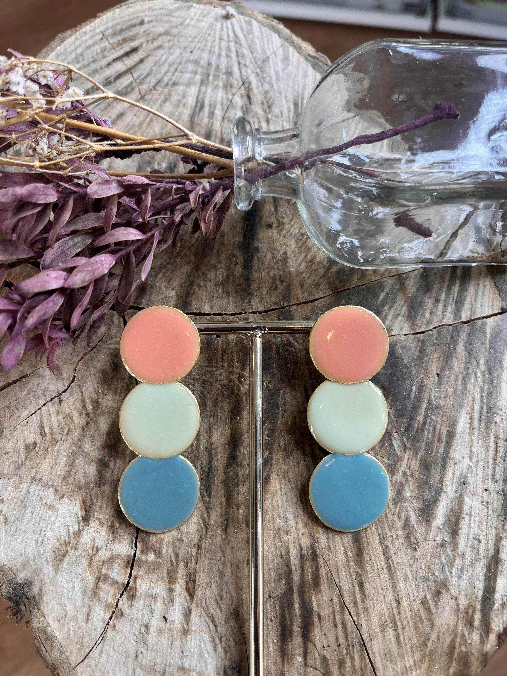 Pendientes hechos en latón y resina esmaltada. Elaborados con mucha pasión en nuestro taller artesanal del centro de Madrid. Gracias por apoyar el trabajo artesanal y local! 🤍